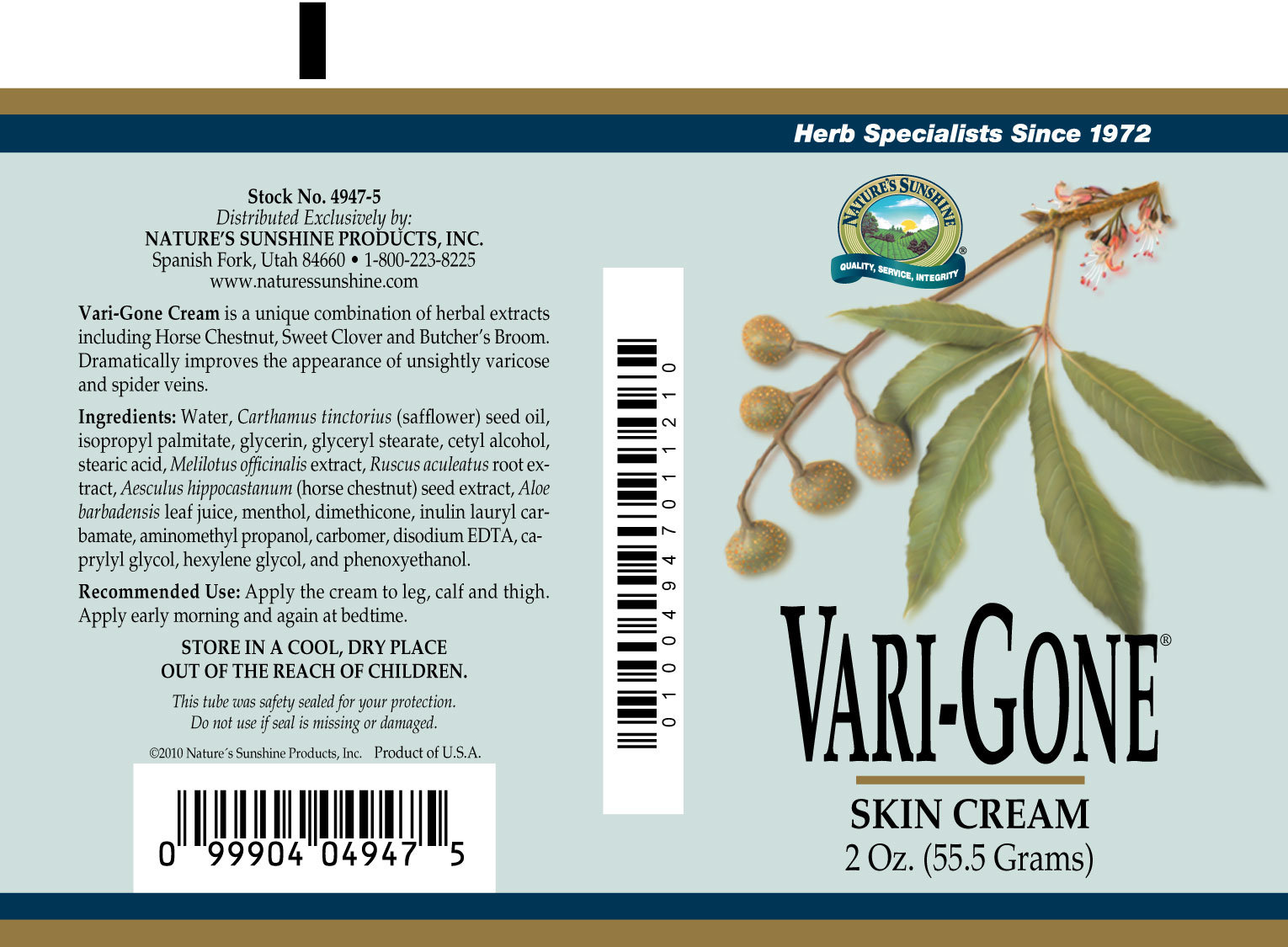 Беларусь, Россия, Армения, Казахстан, Грузия, Монголия, Украина, Молдова Состав крема: Очищенная вода, масло семян сафлора, изопропил пальмитат, глицерин, глерил стеарат, цетиловый спирт, смесь с донником лекарственным, пропилен гликоль, стеариновая кислота, экстракт корня иглицы шиповатой, каприлилгликоль, гексилен гликоль, феноксиэтанол, экстракт семян конского каштана, диметикон, аминометил пропанол, карбомер, ментол, сок листьев алоэ, динатрий ЭДТК, инулин лаурил карбамат. Применение крема: наносите утром и перед сном на чистую кожу ног. США Ingredients Vari-Gone Cream: Water, safflower seed oil, isopropyl palmitate, glycerin, glyceryl stearate, cetyl alcohol, stearic acid, Melilotus officinalis extract, Ruscus aculeatus root extract, horse chestnut seed extract, Aloe barbadensis leaf juice, menthol, dimethicone, inulin lauryl carbamate, aminomethyl propanol, carbomer, disodium EDTA, caprylyl glycol, hexylene glycol and phenoxyethanol. Recommended Use Vari-Gone Cream: Apply the cream to leg, calf and thigh. Apply in the early morning and again at bedtime. NOTE: Do not take internally. Individuals who are taking prescription anti-coagulant medicines should consult their health care providers before using this product. Доставка продукции осуществляется почтой, курьером до дверей или самовывозом (зависит от вашего региона). Оплата производится либо на сайте официального интернет-магазина компании, либо непосредственно при получении товара наличными деньгами в национальной валюте по курсу доллара на момент покупки. Для этого у вас есть возможность оформить дисконтный номер НСП (если его нет) и получить подробную информацию о покупке продукта в вашем регионе.Противовоспалительный и противотромботический